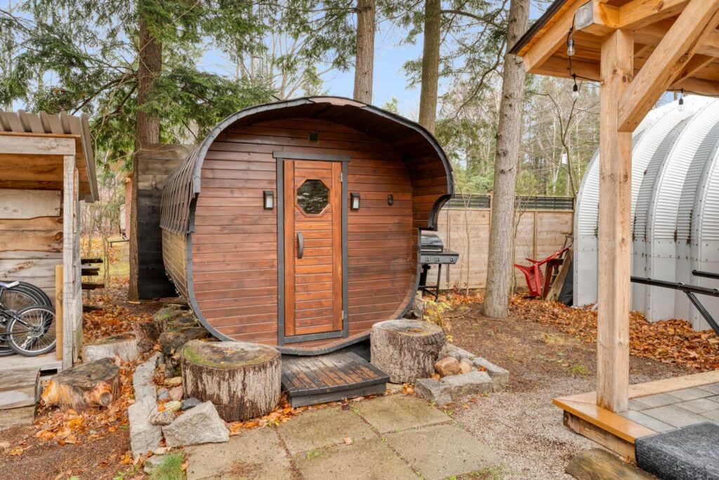 Thunder Beach Retreat offers the cozy charm of a classic cottage atmosphere with all the modern conveniences. Ideal for a couple of families stays or small group getaways, it comfortably sleeps up to 13 guests (mix of adults and children). With plenty of room for unwinding or remote working, the cottage has a “work-from-cottage” station, a stand-alone man cave with a pool table, and amenities that cater to every season, occasion and preference. Enjoy the barrel sauna, hot tub, and a spacious backyard with a firepit perfect for starry nights and delicious s’mores. This place is the ultimate family getaway.
